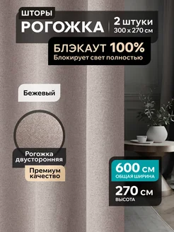 Шторы блэкаут рогожка 300х270 см 2 шт ширина 600 высота 270