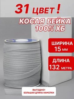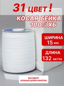 Косая бейка 100% ХБ 15мм 132м хлопковая тесьма для шитья