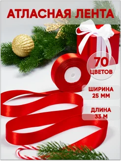 Лента атласная 25 мм 33 м для упаковки подарков и рукоделия