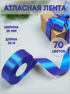 Лента атласная синяя упаковочная 25 мм 33 м подарочная декор