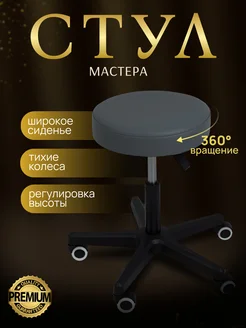Стул мастера черный на колесиках с регулировкой высоты