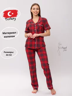 Пижама со штанами и рубашкой в клетку