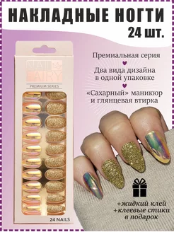 Накладные ногти золото с дизайном блестящие