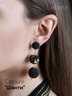 Серьги бижутерия из бисера 5 см черные