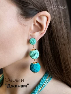 Серьги длинные 6 см из бисера цвет бирюза