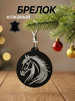 Брелок кожаный новогодний шар с лошадью