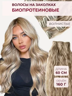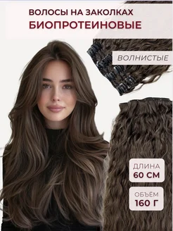 Волосы на заколках пряди для наращивания волнистые 60 см