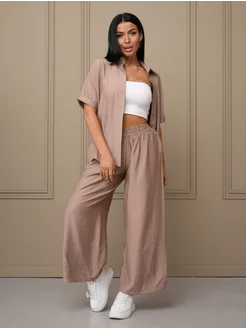 Костюм льняной с брюками и рубашкой летний оверсайз