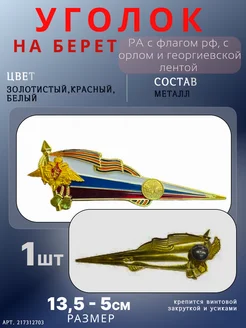 Угол на берет РА с флагом РФ с орлом и георгиевская лентой