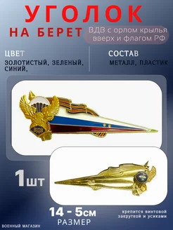 Уголок ВДВ с орлом крылья вверх и флагом РФ