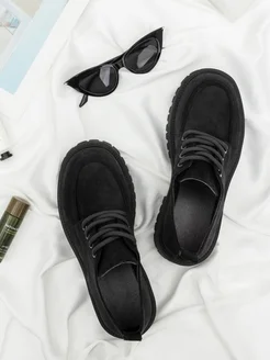 Лоферы замшевые на платформе и шнурках весенние