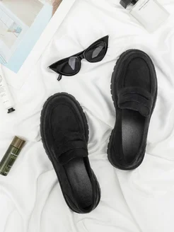 Лоферы замшевые на платформе туфли