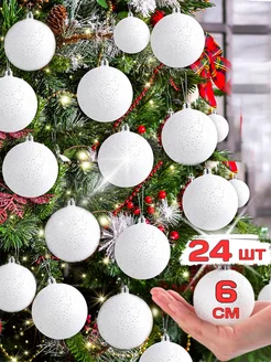 Елочные шары набор 24 шт белые 6 см новогодние украшения