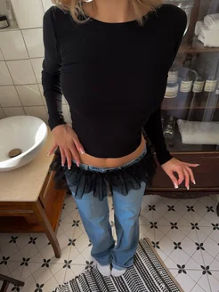 Лонгслив чёрный облегающий в рубчик хлопок кофта скимс