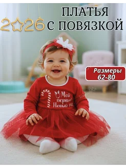 Платье новогоднее с бантом Мой первый новый год для девочки