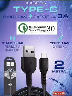 Кабель Hoco usb type-c 2 метра 3A зарядка для Android