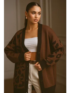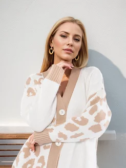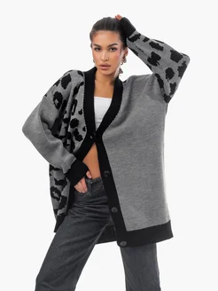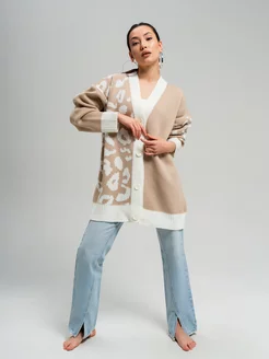 Вязаный удлиненный кардиган оверсайз на пуговицах