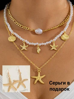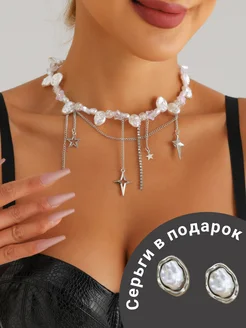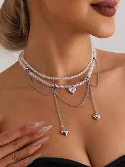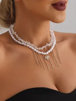 Жемчужные бусы Хрусталь многослойные с кулоном