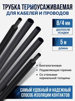 Термоусадочная трубка для проводов 8.0 4.0 мм 5 метров