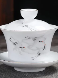 Гайвань Нефритовый фарфор "Журавли"