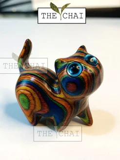 Деревянный полосатый кот с голубыми глазами