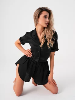 Пижама шелковая с шортами и рубашкой