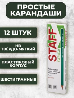 Набор чернографитных, простых карандашей НВ 12 штук