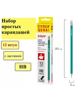 Набор карандашей чернографитных с ластиком НВ 12 штук