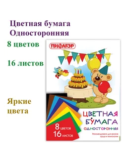 Односторонняя цветная бумага 8 цветов 16 листов