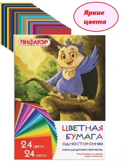 Односторонняя цветная бумага 24 цвета 24 листа