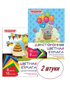 Односторонняя и двусторонняя цветная бумага 2 упаковки