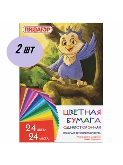 Односторонняя цветная бумага 24 цвета 24 листа 2 Штуки