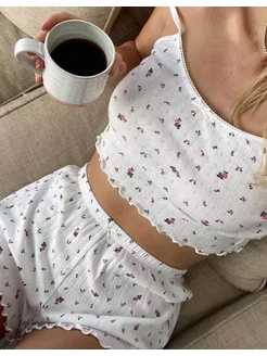 Домашняя милая пижама с шортами и хлопком