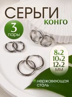 Набор из 3х пар Серьги кольца-конго. 8,10,12 мм