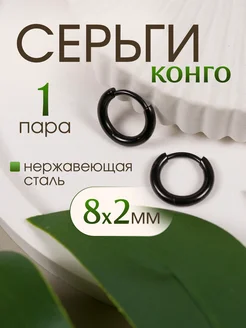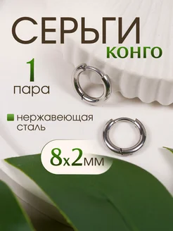 Серьги кольца-конго 8мм*2мм из нержавеющей стали