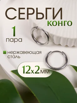 Серьги кольца-конго 12мм*2мм. Нержавеющая сталь