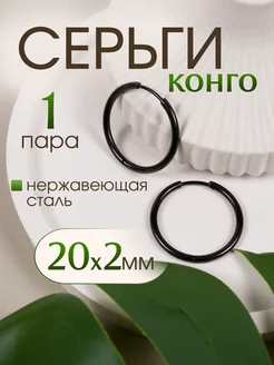 Серьги кольца-конго 20*2мм черные. PVD покрытие