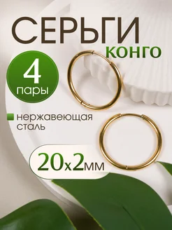 Серьги кольца-конго 4 пары. 20*2мм с PVD покрытием
