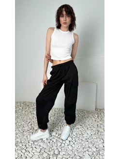 Брюки карго прямые на резинке