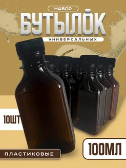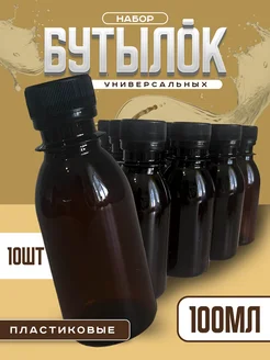 Бутылка пластиковая, 100 мл, 10 шт. коричневая