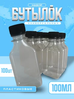 Бутылка пластиковая, 100 мл, 100 шт. квадрат прозрачная