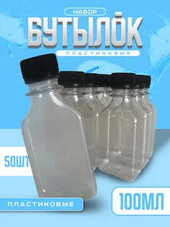 Бутылка пластиковая, 100 мл, 50 шт. квадрат прозрачная