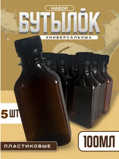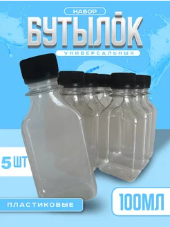Бутылка пластиковая, 100 мл, 5 шт. прямоугольная