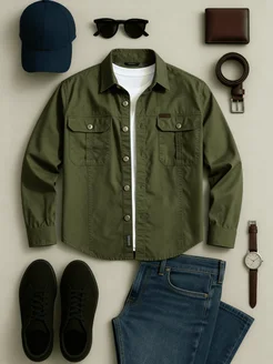 Повседневная рубашка джинсовая плотная с длинным рукавом