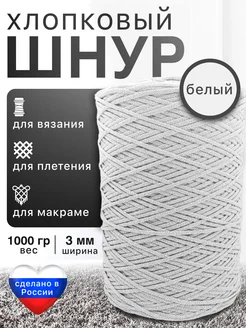 Хлопковый шнур, пряжа для вязания 3мм 1000г, Белый