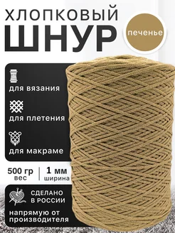 Хлопковый шнур, пряжа 1мм 500гр, Печенье