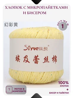 Пряжа Хлопок с бисером и микропайетками Светло-желтый