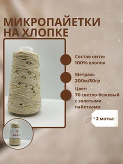 Пряжа с пайетками 2-3мм на 100% хлопке, 2 мотка, цвет 70
