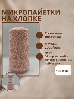 Пряжа с пайетками 2-3мм на 100% хлопке, 1 моток, цвет 84