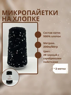 Пряжа с пайетками 2-3мм на 100% хлопке, 2 мотка, цвет 29